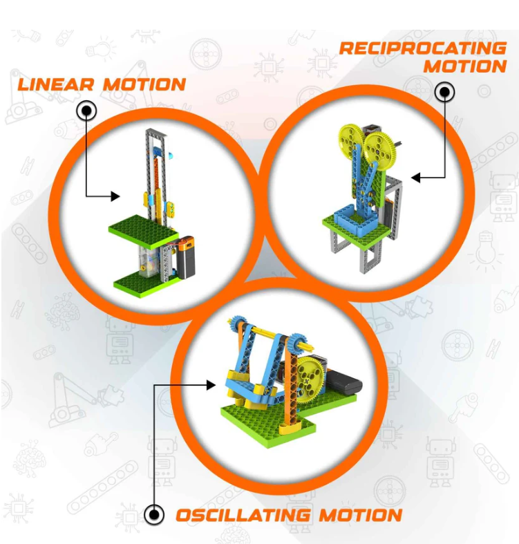 Through Discovering motions, 3rd to 5th grade students will learn about motions and their types, mechanisms that you can use to modify motions, and how some of these mechanisms can create magic by increasing force or speed. They will experiment with gears, power screws, crank and slider, cam and follower and other mechanisms to learn about Mechanical advantage, force, speed, energy, power and work done. Finally, they will explore simple machines to complete their understanding of basic Mechanics.